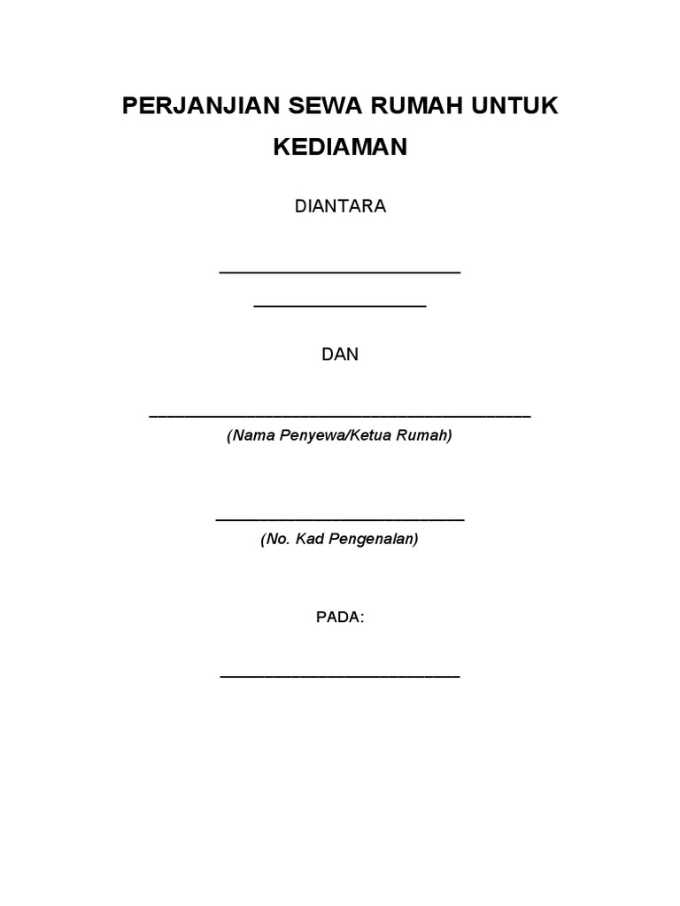 Di antara pihak berikut. Berikut adalah contoh surat perjanjian sewa rumah yang boleh anda rujuk dan edit sekiranya perlu. PERJANJIAN ini dibuat padaharibulan.